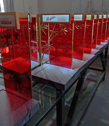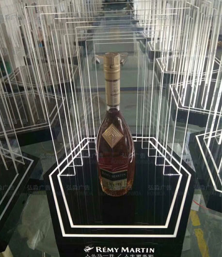 1.透光性決定亞克力創(chuàng)意展示制品能結(jié)合燈光,創(chuàng)造出具有動態(tài)光感的展示制品,此特性常常能在廣告燈箱,吊頂燈的廣泛運用中體現(xiàn)。而在亞克力創(chuàng)意展示道具制品中,主要依托于設(shè)計師們的設(shè)計理念,以下上海弘淼亞克力展示道具加工廠定制啤酒單瓶陳列案例中,可體現(xiàn)亞克力透光性在亞克力展示道具中的體現(xiàn)。